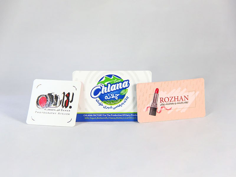 90 × 60 mm بزرگ (90×60 میلیمتر), 56 × 59 mm کوچک (59×56 میلیمتر), 60 × 90 mm بزرگ (60×90 میلیمتر), 48 × 85 mm ویزیتی (85×48 میلیمتر)